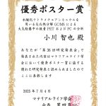 2025年7月4日 / 最終更新日時 : 2025年10月3日 chem 受 賞 マテリアルライフ学会第36回研究発表会で小川智也さんが優秀ポスター賞を受賞 2025年7月3〜4日にShimadzu Tokyo Innovation Plaza(川崎市)で開催されたマテリアルライフ学会第36回研究発表会において化学B-1講座の小川智也さんが優秀ポスター賞を受賞しました。 受賞 […]